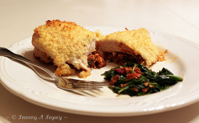 I am very fortunate to have a husband that not only loves to cook, but also makes very delicious meals. One of our recent favorite dishes is Feta-Stuffed Chicken Breasts. This recipe was taken from the Weight Watchers Ready, Set, Go! Cookbook.