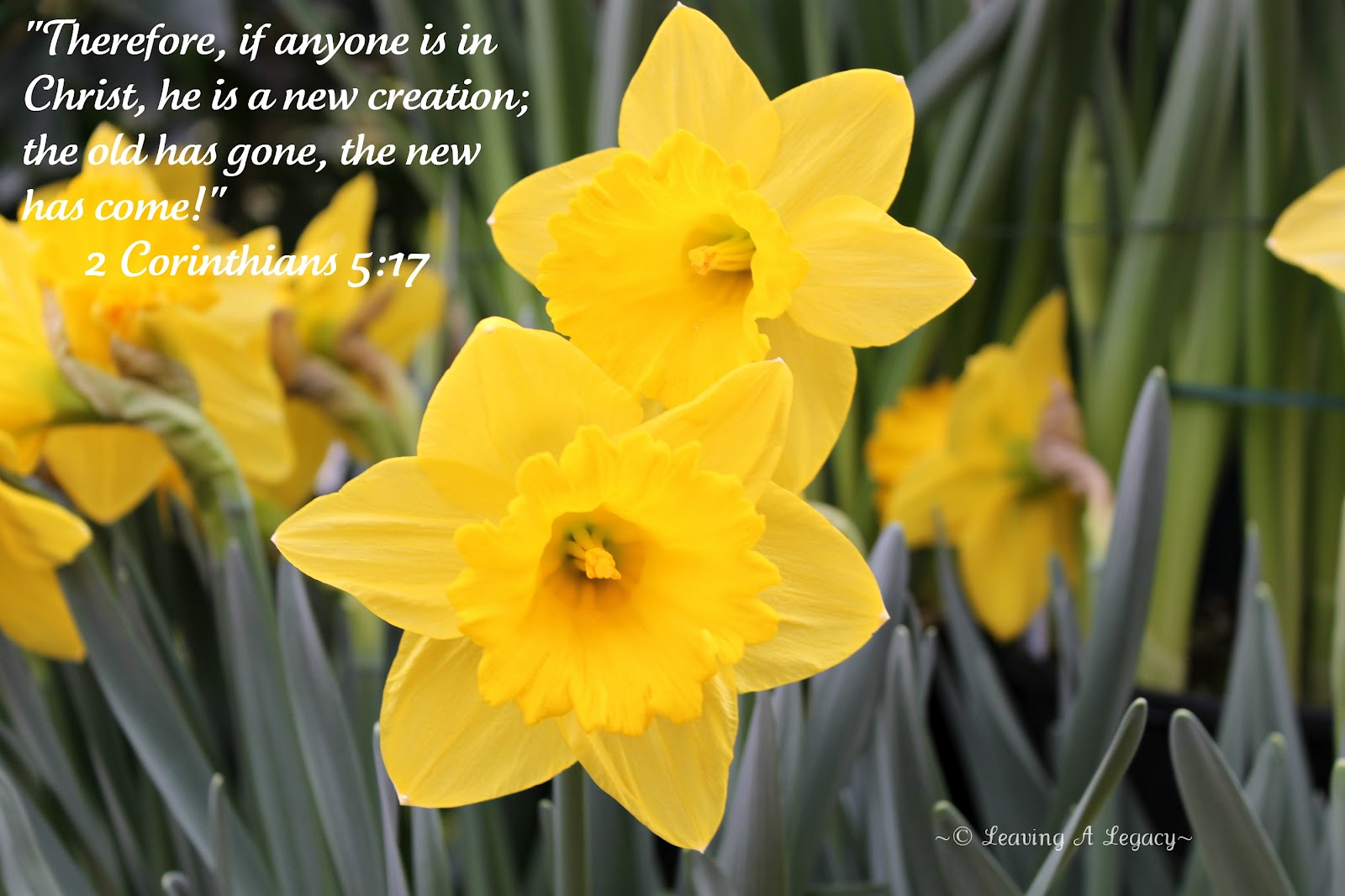 I love daffodils, they’re one of my favorite flowers. They remind me of Spring and the fresh morning air. They also remind me of God’s promises, how they are new every morning. How blessed we are to be a new creation in Him, all because of His love for us and sending His son to die on the cross for our sins. As I was writing this, the hymn “Great is the Faithfulness, ” came to my mind. Take a moment to pause the music on the sidebar, and listen to this song as you offer praise and worship to the Lord.