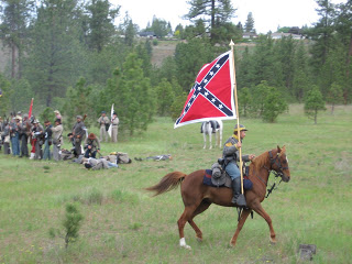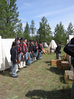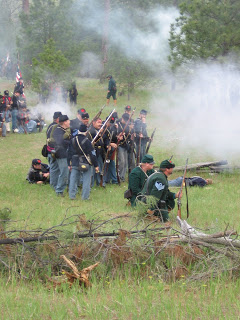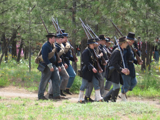 Today we had a homeschooling family day as we walked back in time and spent the day at a Civil War re-enactment. All of our family, including Momma, my brother Gary and my great-nephew Aaron were able to go. The re-enactment included being able to look at Union and Confederate camp grounds followed by a re-enactment of the first battle of Bull Run. The participants were very friendly at each stop we went, as they gave information about what it was like to live back then. There was even a narrator before the battle began that explained what was going on.